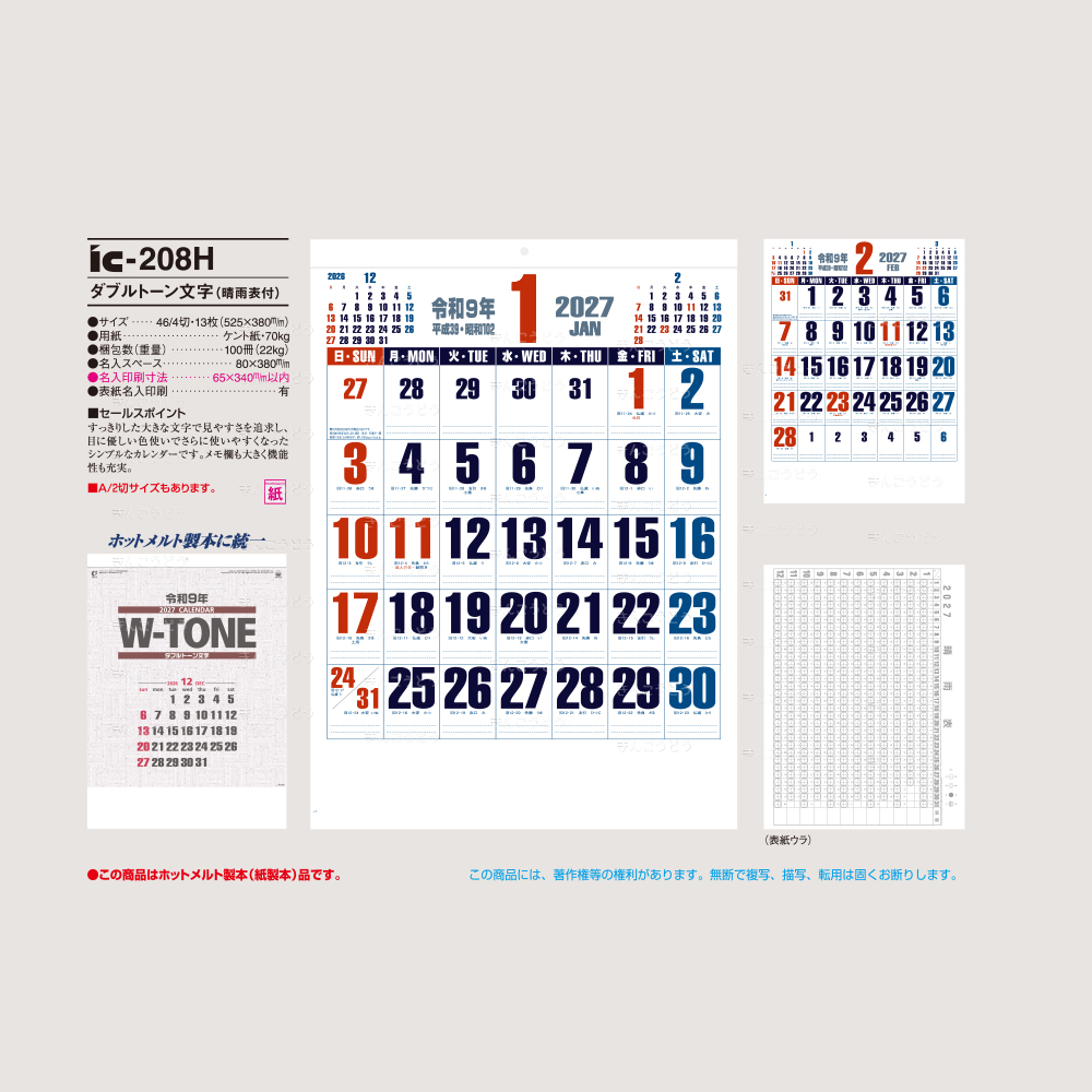 IC-501H ダブルトーンジャンボ・年表入(年間予定表付)・ホットメルト製本(46/2切・13枚・760×515mm)