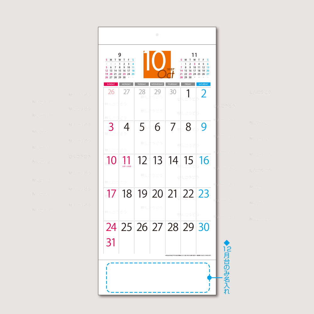 六曜表示が無いので、幅広い業種に対応し汎用性に富んだカレンダーです。