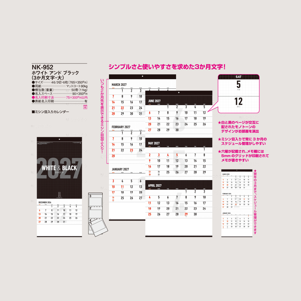NK-952 ホワイト アンド ブラック(3か月文字・大)(46/3切・6枚・765×350㎜)