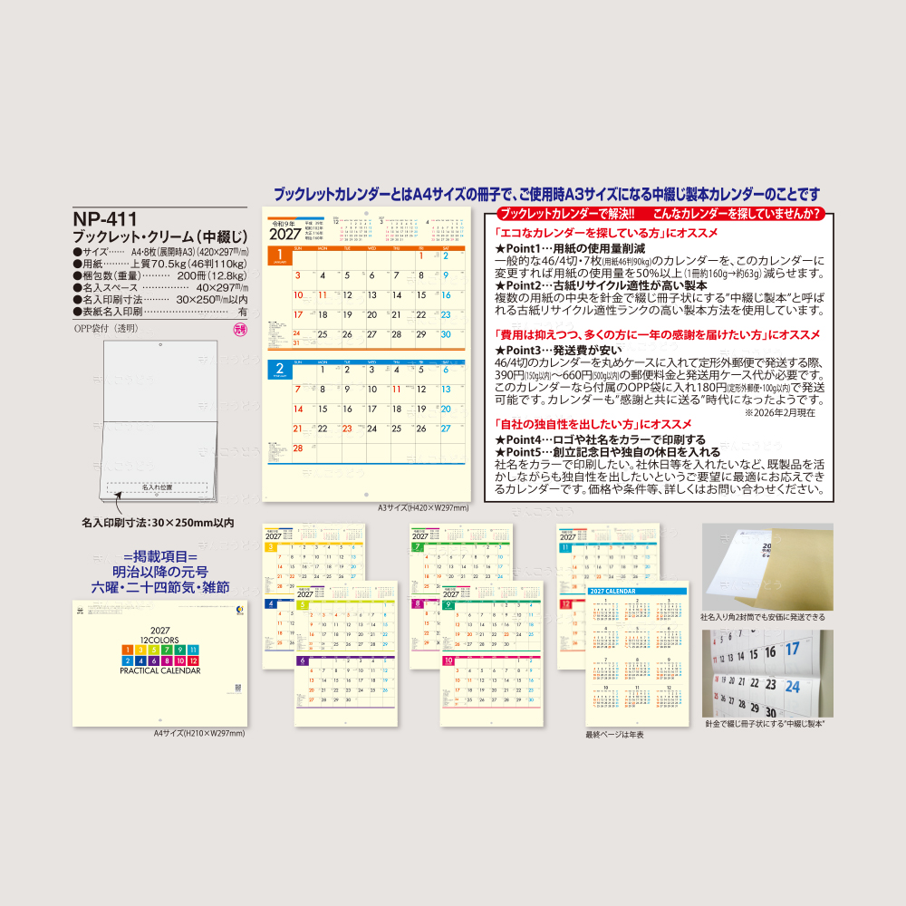 ブックレットカレンダーとはA4サイズの冊子で、ご使用時A3サイズになる中綴じ製本カレンダーのことです。