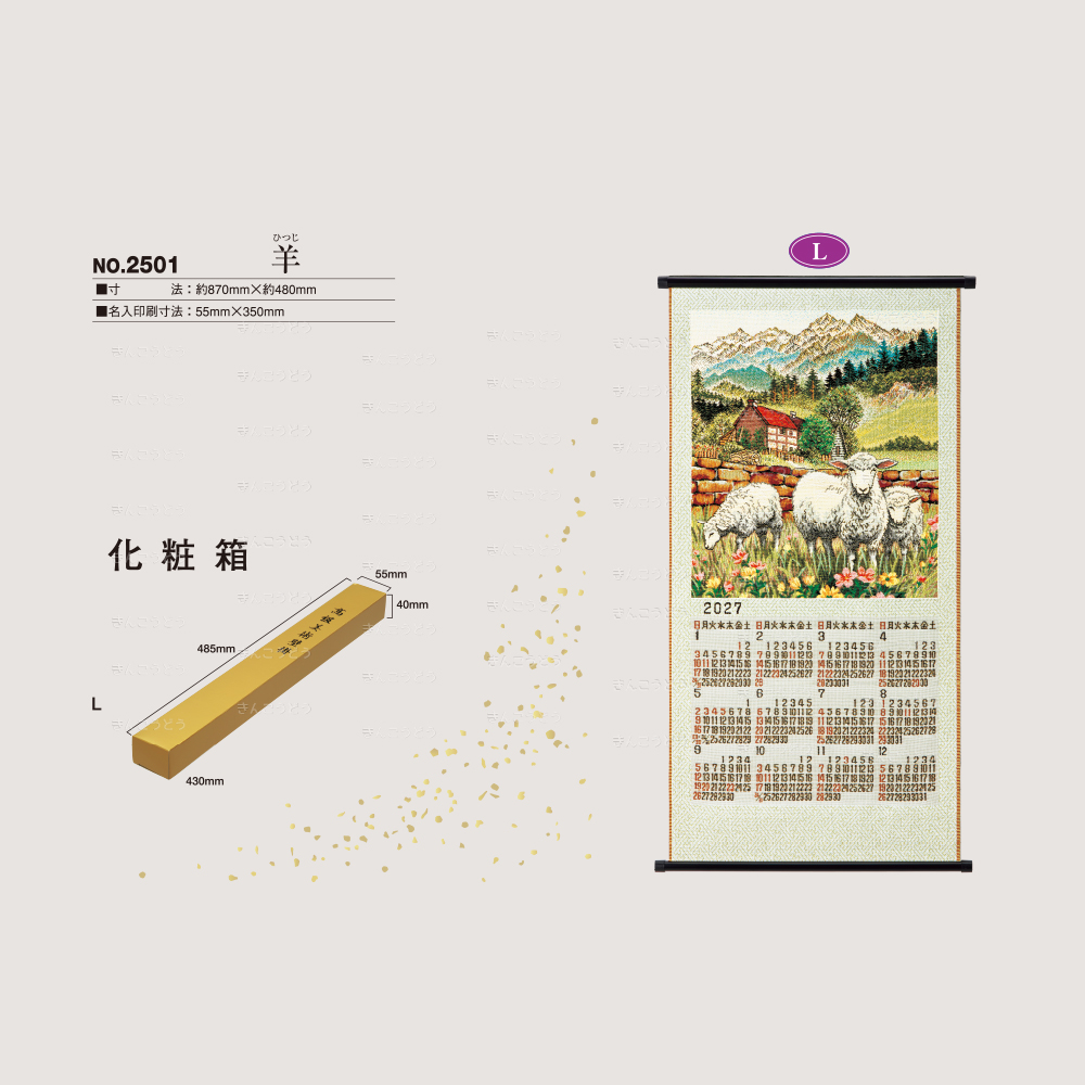 既製品カレンダーからお好きな商品・豊富な品揃えでお好みの品番のカレンダーに名入れをしてお届けいたします。