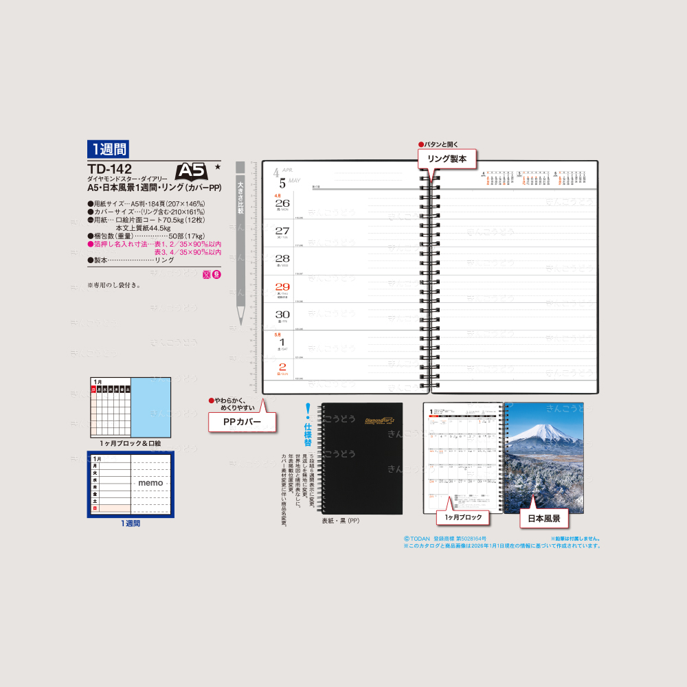 【TD-142】A5・日本風景1週間・リング(カバーPP)