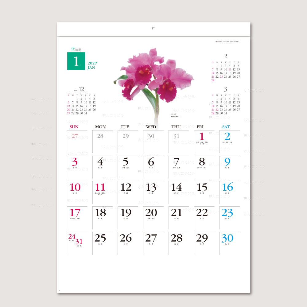 大きな文字とメモスペース。使いやすさを追求したカレンダーに、四季折々の花が美しさを加えました。オフィスだけでなく、ご家庭のリビングにもピッタリの、実用的なカレンダーです。