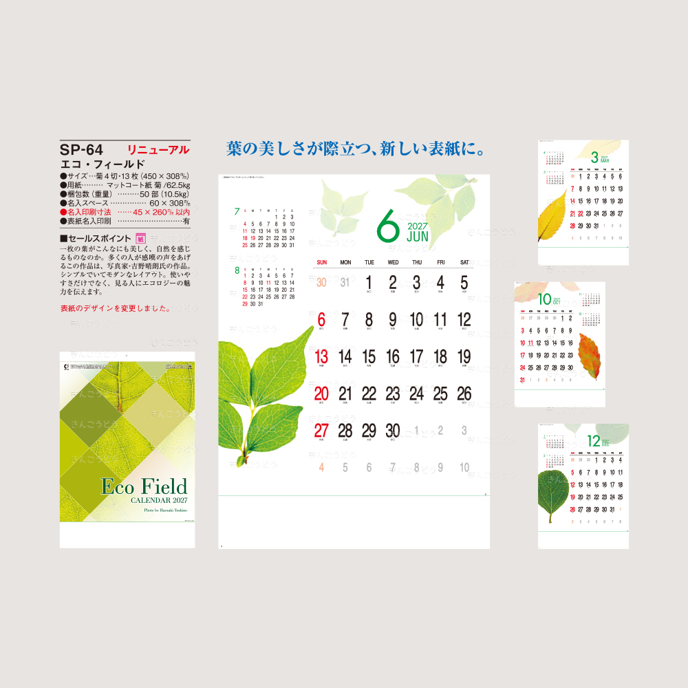 一枚の葉がこんなにも美しく、自然を感じるものなのか。多くの人が感嘆の声をあげるこの作品は、写真家・吉野晴朗氏の作品。シンプルでいてモダンなレイアウト。使いやすさだけでなく、見る人にエコロジーの魅力を伝えます。