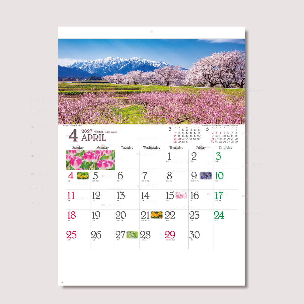 既製品カレンダーからお好きな商品・豊富な品揃えでお好みの品番のカレンダーに名入れをしてお届けいたします。