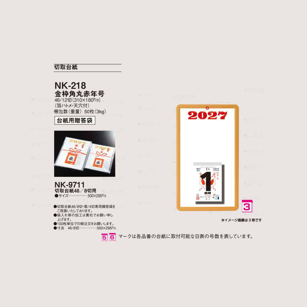 【NK-218-3】切取台紙「金枠角丸赤年号」+日表新3号