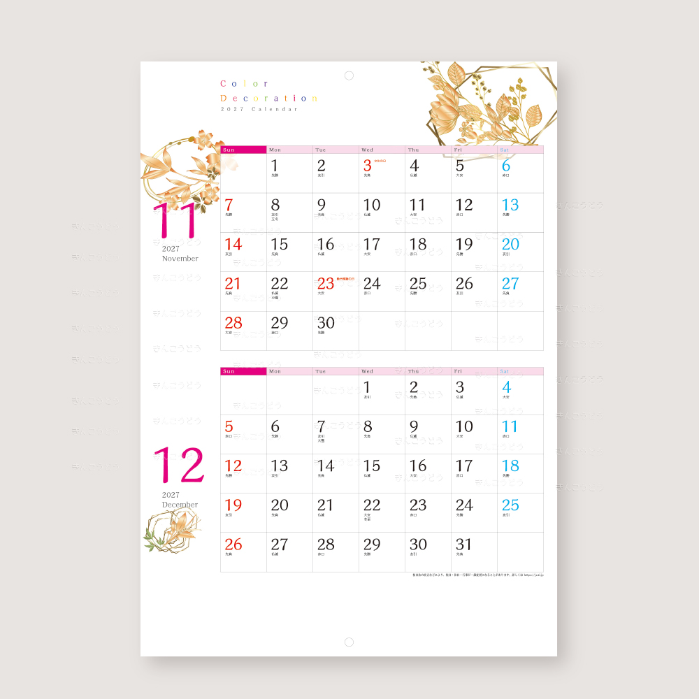 既製品カレンダーからお好きな商品・豊富な品揃えでお好みの品番のカレンダーに名入れをしてお届けいたします。