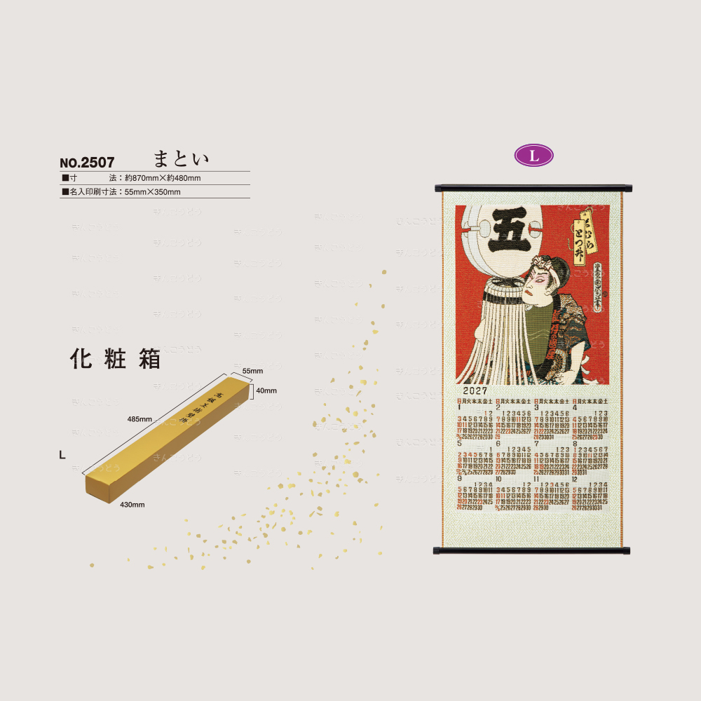 既製品カレンダーからお好きな商品・豊富な品揃えでお好みの品番のカレンダーに名入れをしてお届けいたします。