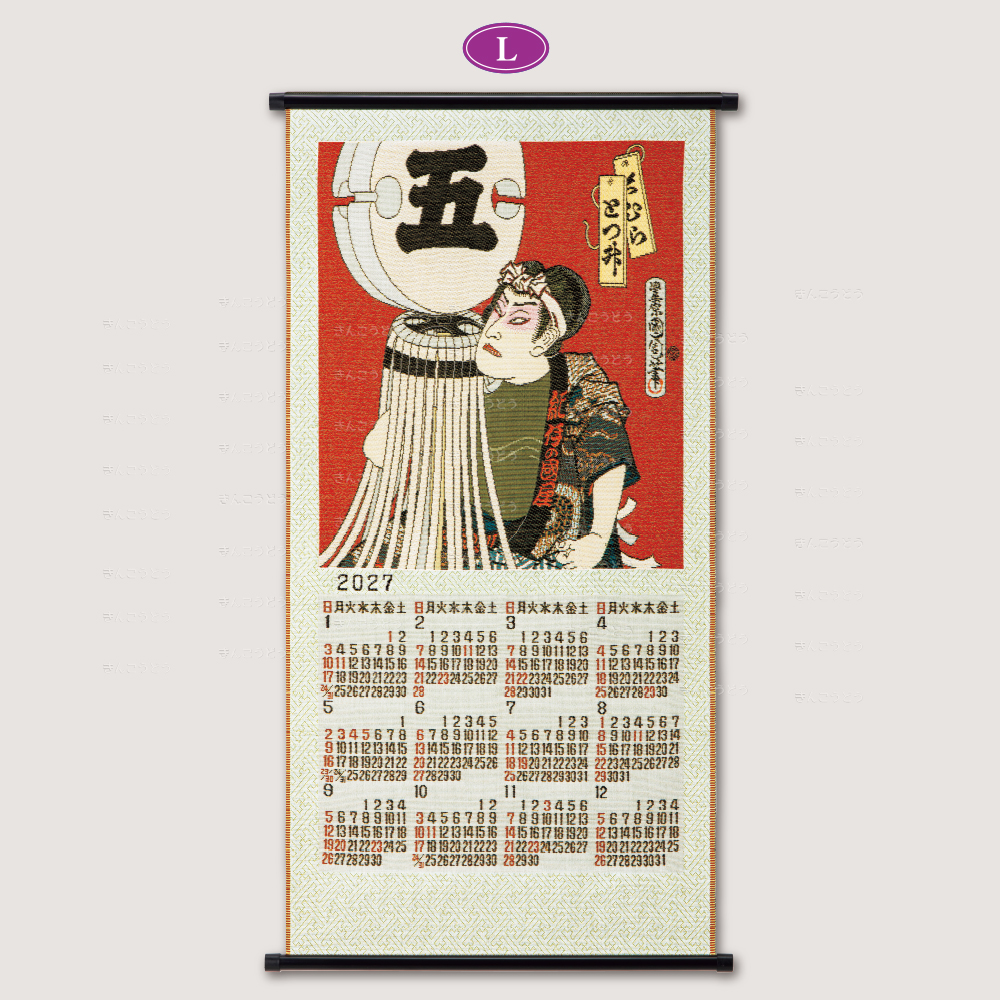 江戸歌舞伎の人気役者を火消しに見立てて描いた浮世絵。江戸の華、粋な纏の名場面がゴブラン織りカレンダーになりました。