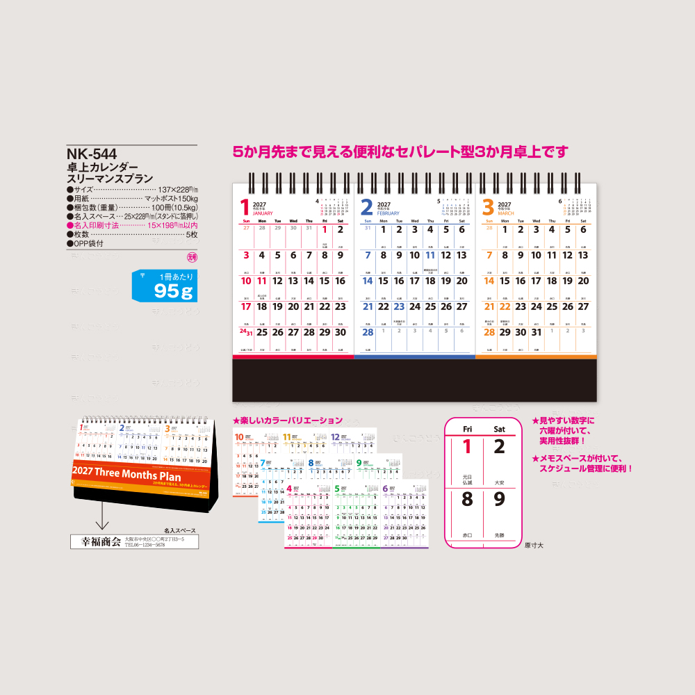 【NK-544】卓上カレンダー スリーマンスプラン