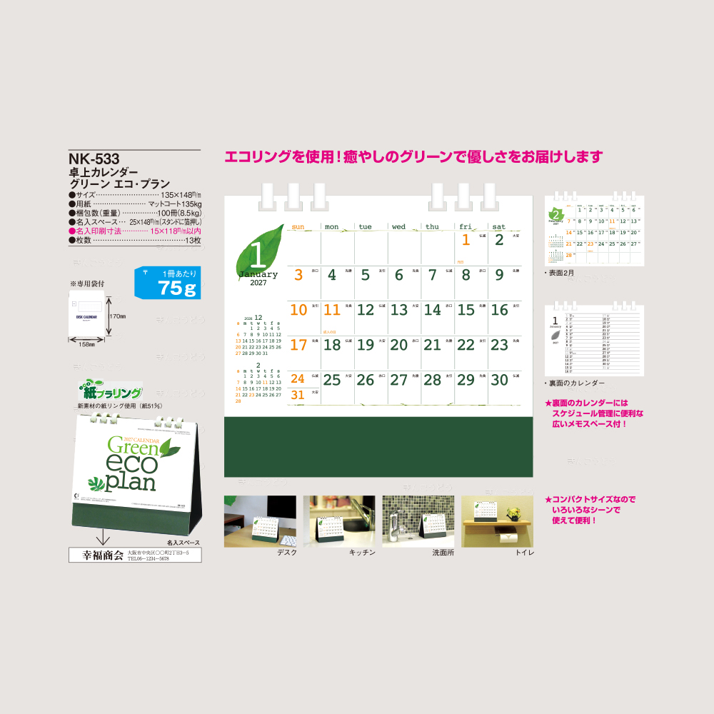 【NK-533】卓上カレンダー グリーン エコ・プラン