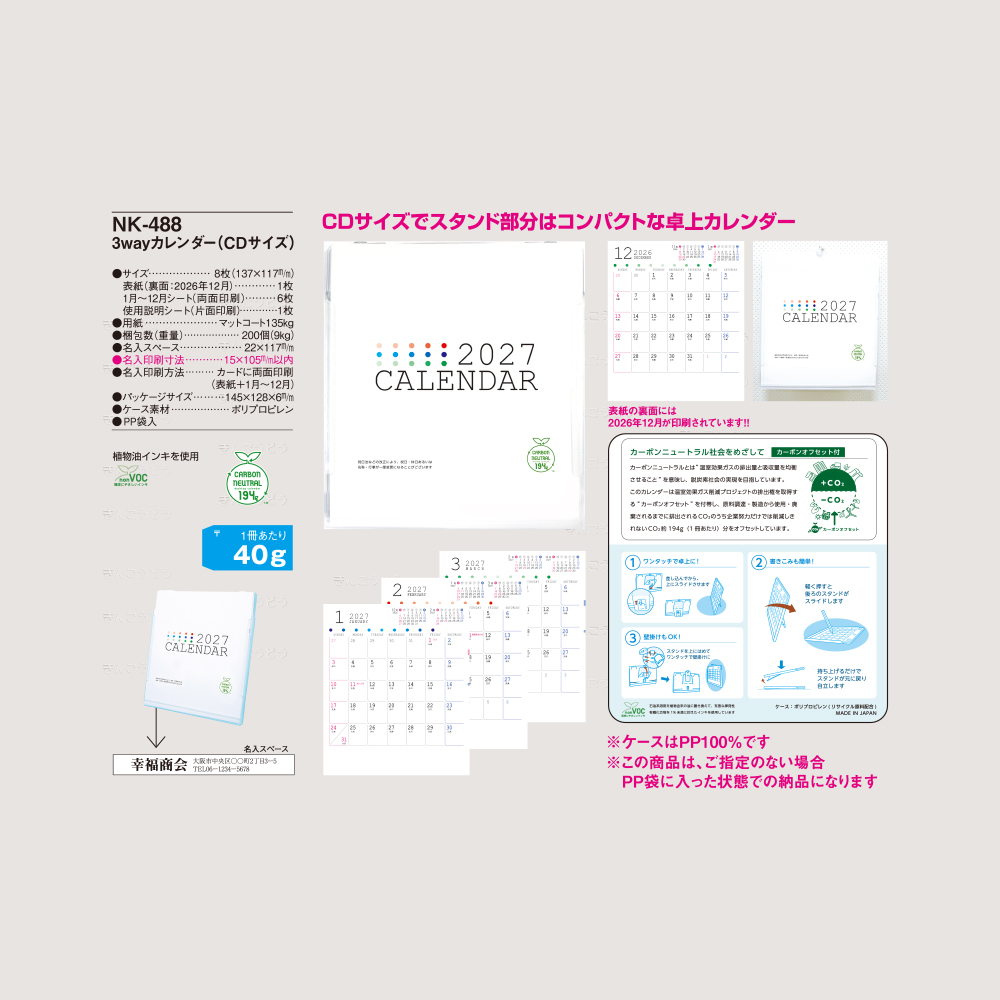 ※こちらの商品は『3Wayカレンダー(CDサイズ)TS-651A』と同じです。