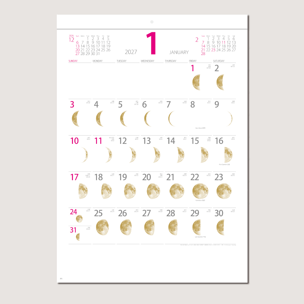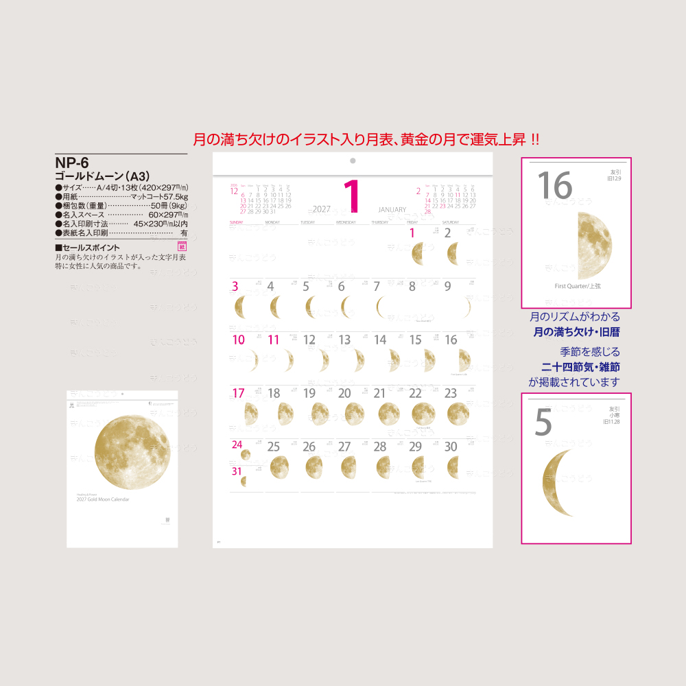 月の満ち欠けのイラストが入った文字月表。特に女性に人気の商品です。