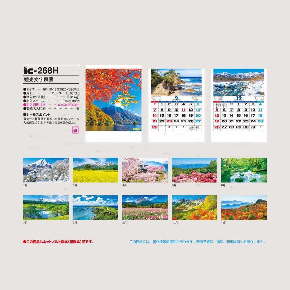機能性と装飾性を兼備した風景カレンダーの高人気商品です。日本各地の秀景を集めました。