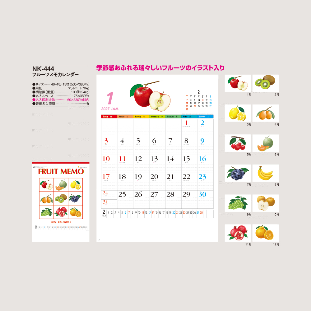 ※こちらの商品は『フルーツメモカレンダー MM-229』と同じです。