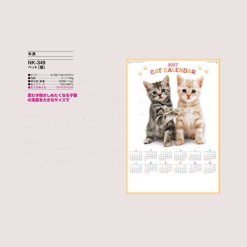 既製品カレンダーからお好きな商品・豊富な品揃えでお好みの品番のカレンダーに名入れをしてお届けいたします。