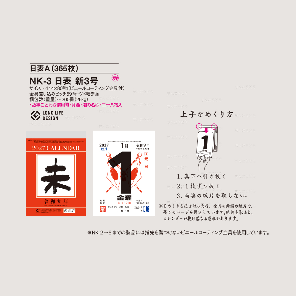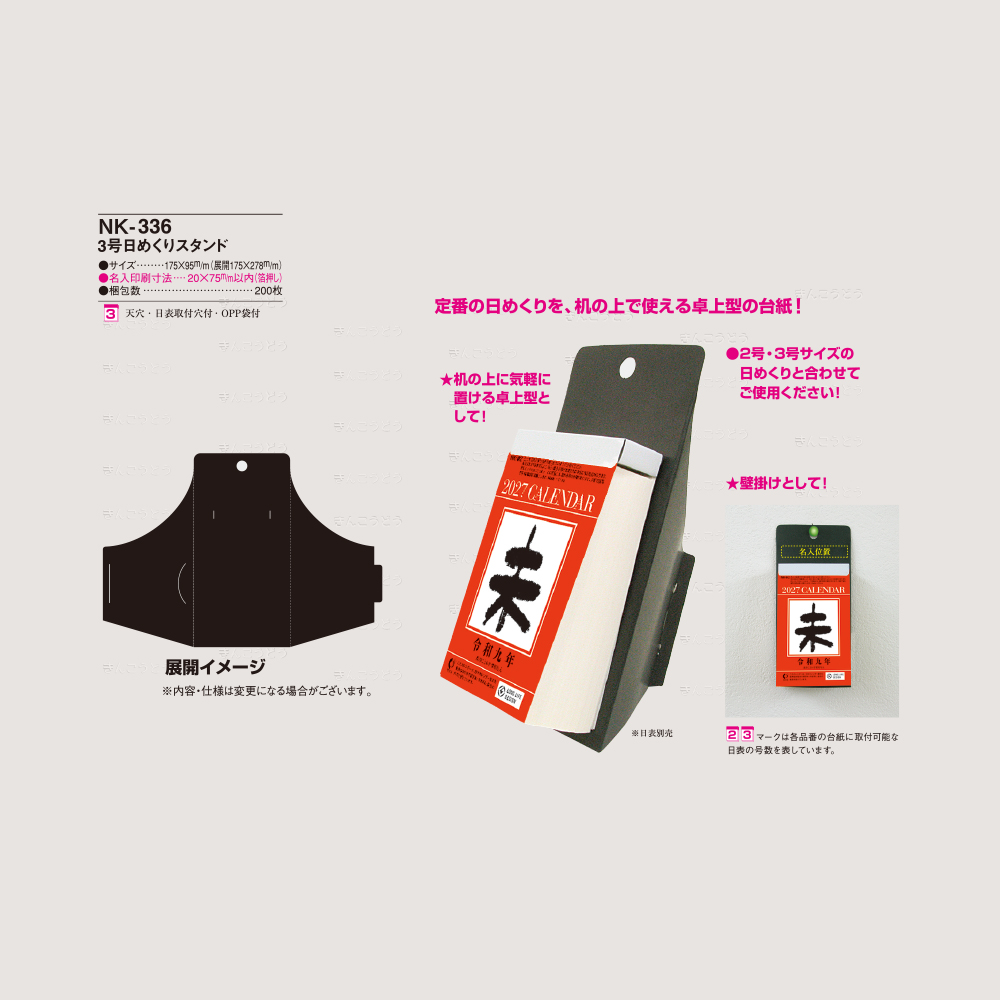 NK-336-3 3号・日めくりスタンド(スタンド・175×95㎜/日めくり・114×80㎜)