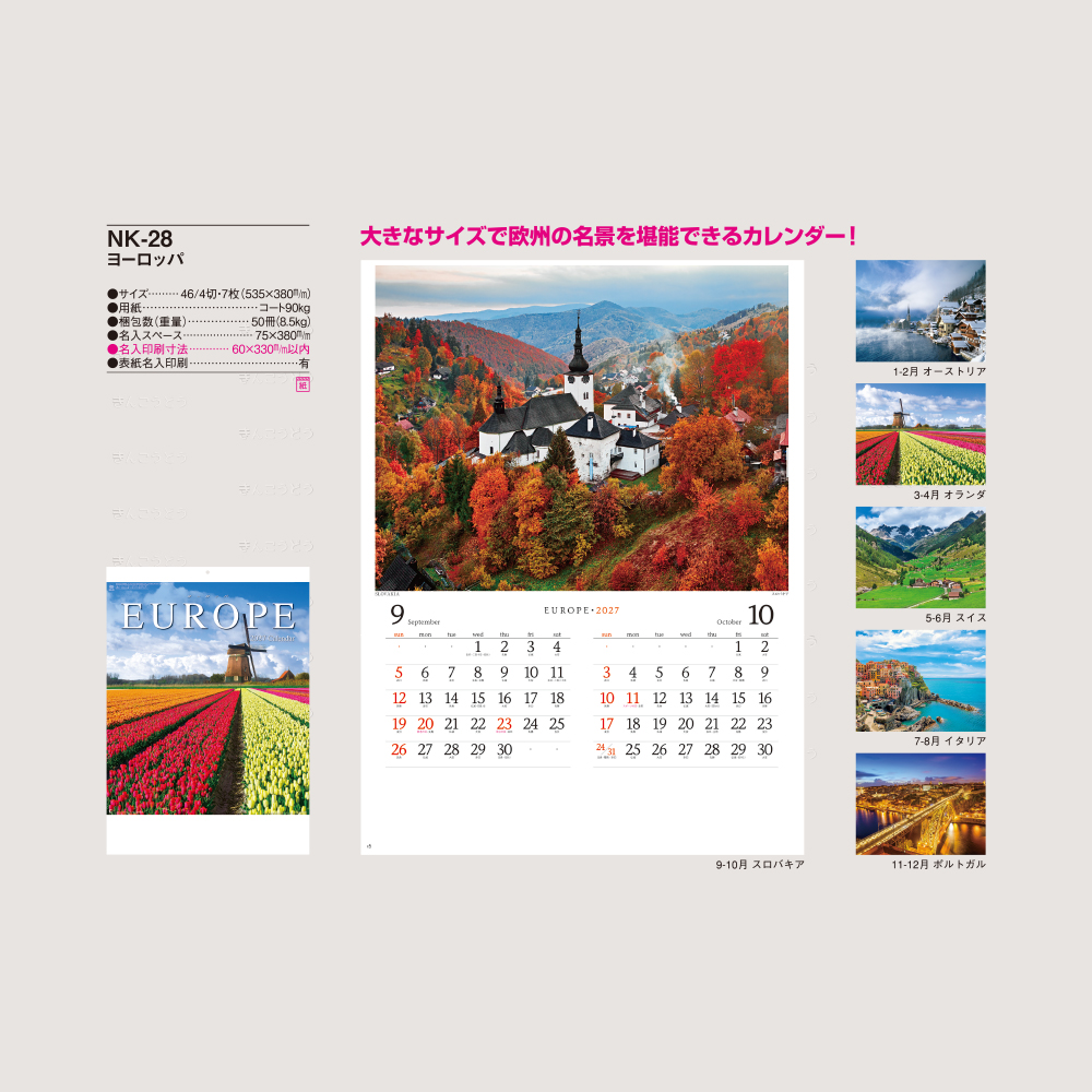 大きなサイズで欧州の名景を堪能できるカレンダー!