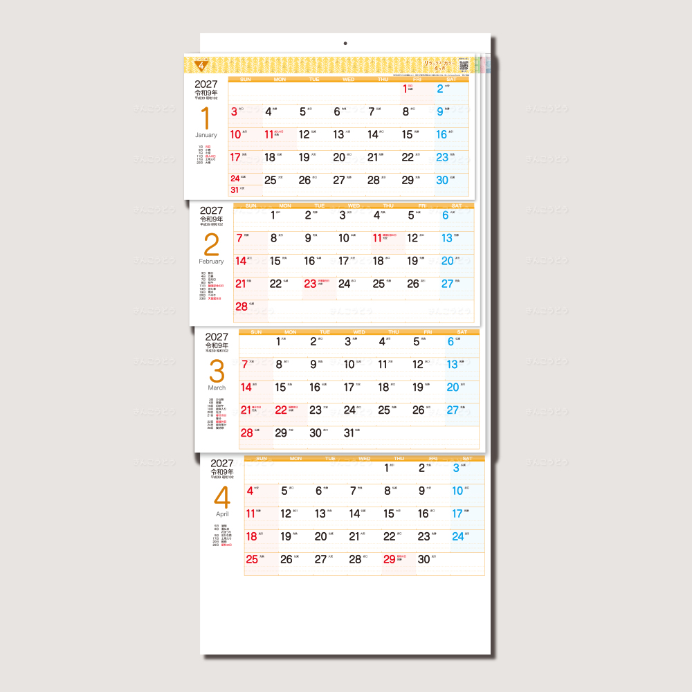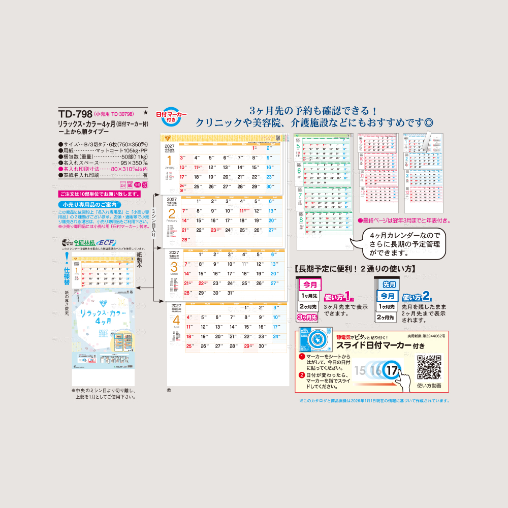 【TD-798】リラックス・カラー4ヶ月(日付マーカー付)-上から順タイプ-