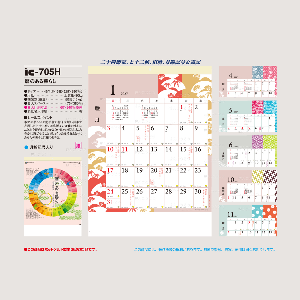 ★日本の伝統模様と着物をイメージした配色で季節感を演出しています。