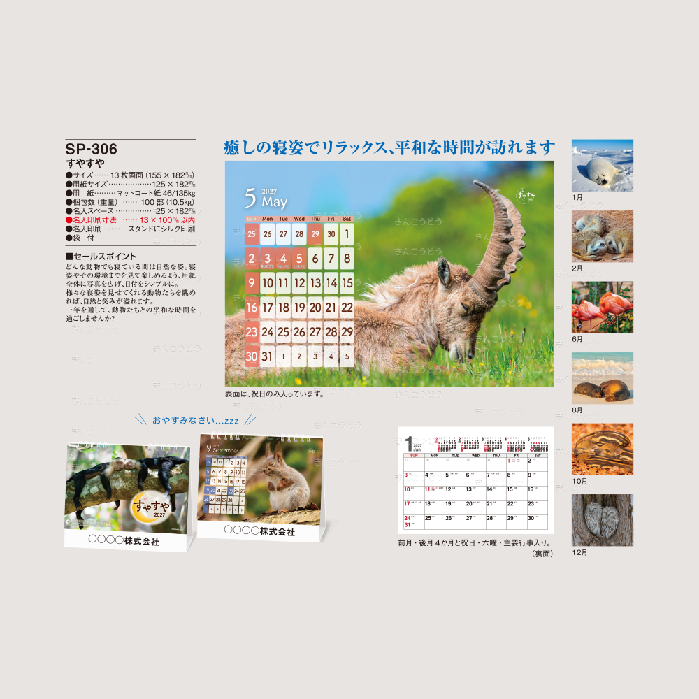 既製品カレンダーからお好きな商品・豊富な品揃えでお好みの品番のカレンダーに名入れをしてお届けいたします。