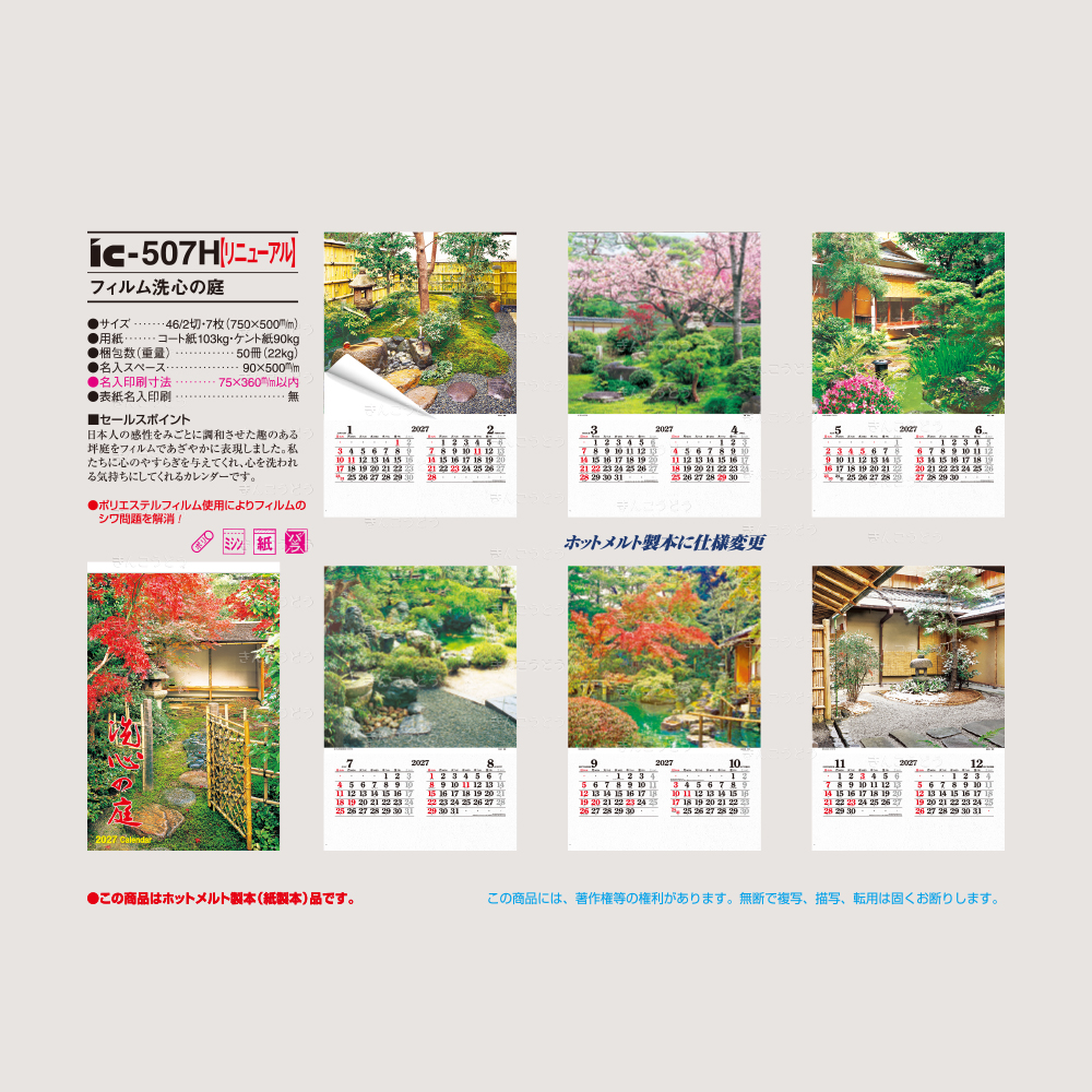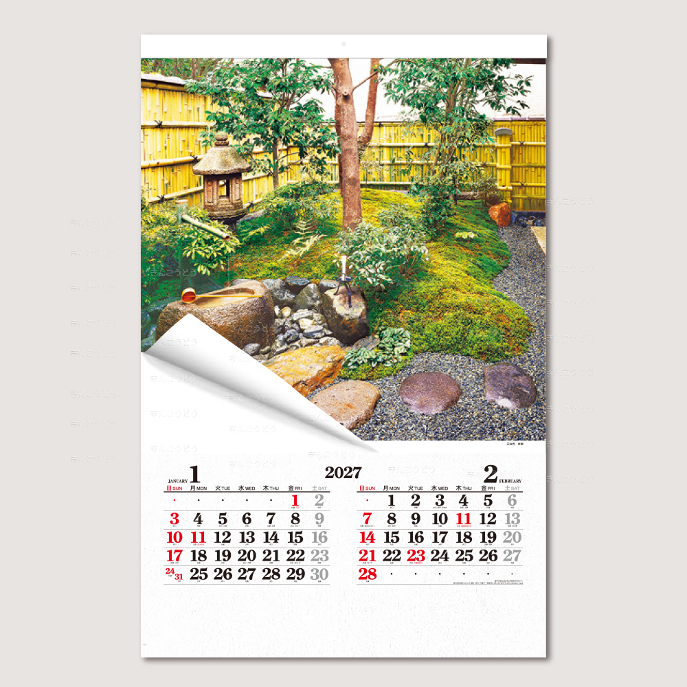 日本人の感性をみごとに調和させた趣のある坪庭をフィルムであざやかに表現しました。私たちに心のやすらぎを与えてくれ、心洗われる気持ちにしてくれるカレンダーです。