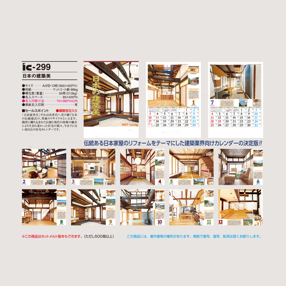 伝統ある日本家屋のリフォームをテーマにした建築業界向けカレンダーの決定版‼