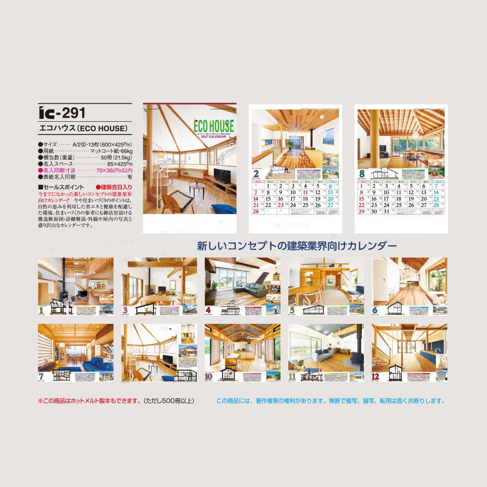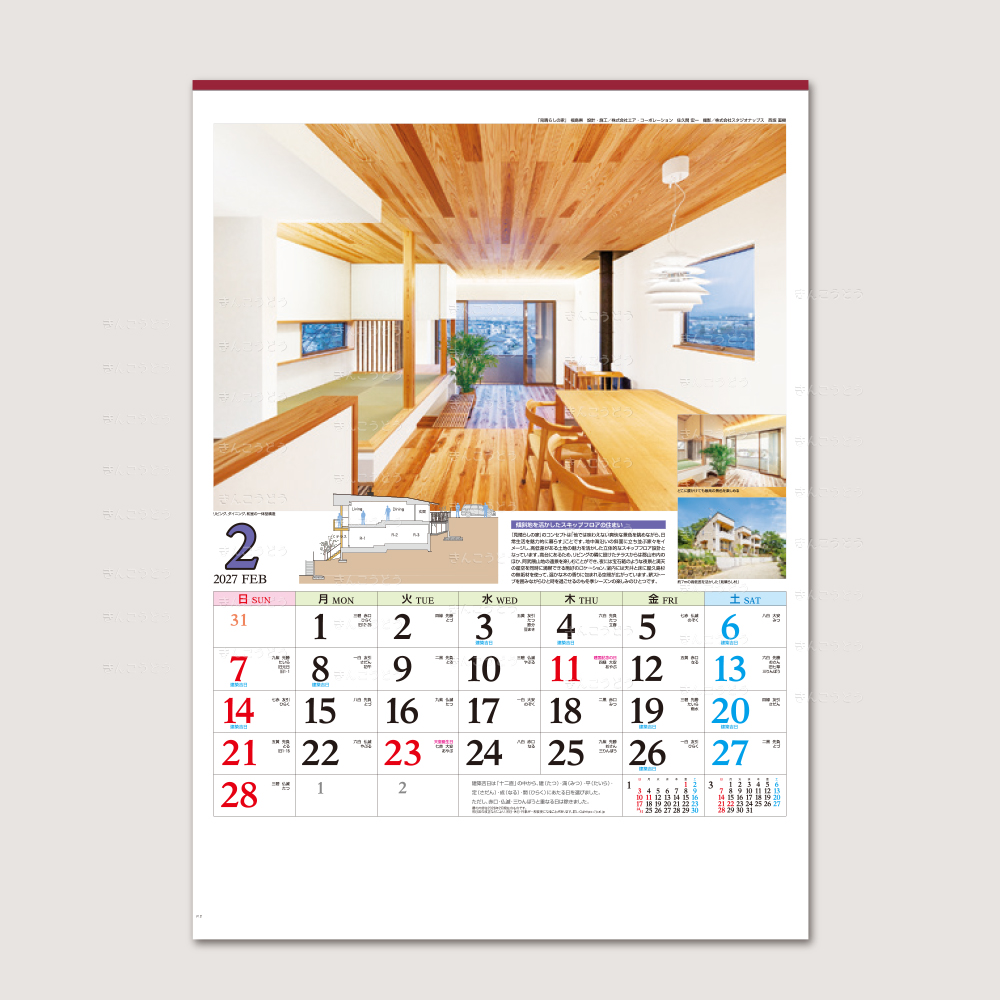 今や住まいづくりのポイントは、自然の恵みを利用した省エネと健康を配慮した環境。住まいづくりの参考にもご活用頂ける構造断面図・詳細解説・外観や屋内の写真と盛り沢山なカレンダーです。