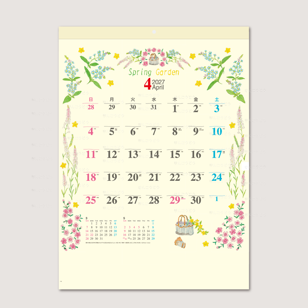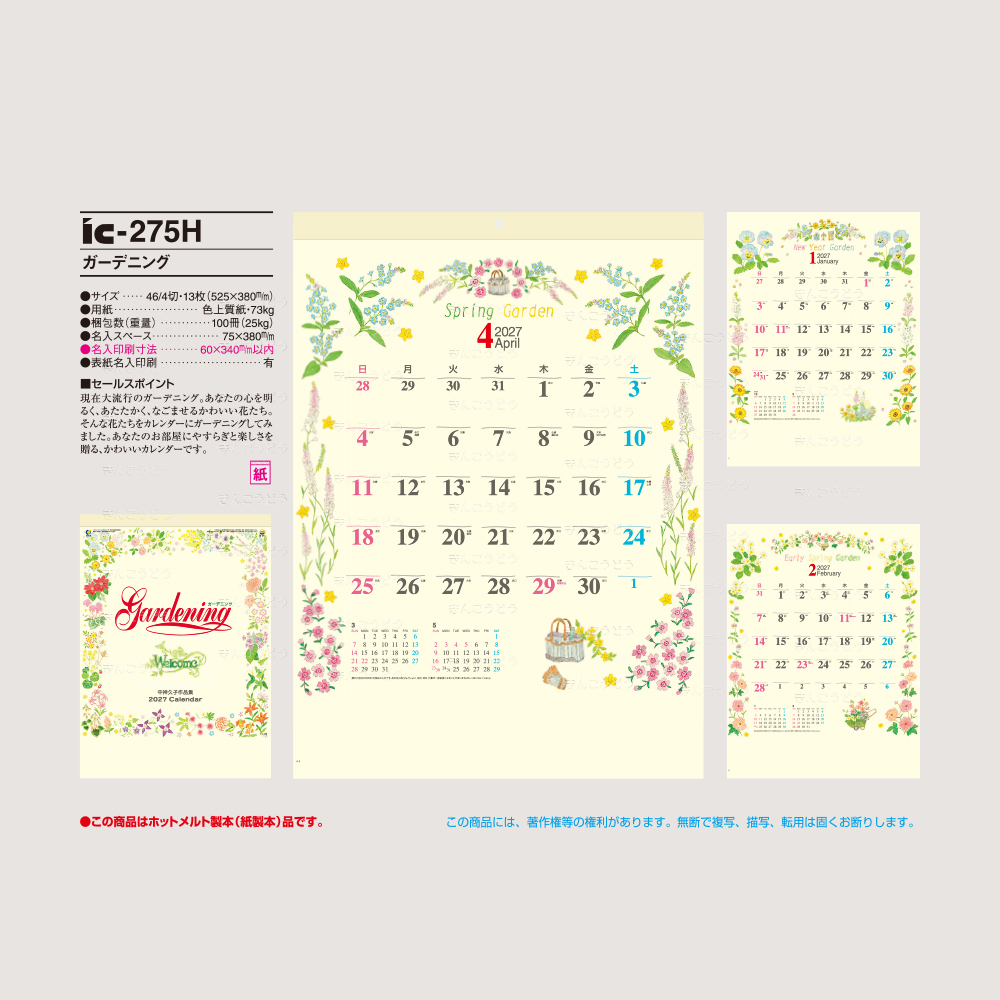 現在大流行のガーデニング。あなたの心を明るく、あたたかく、なごませるかわいい花たち。そんな花たちをカレンダーにガーデニングしてみました。あなたのお部屋にやすらぎと楽しさを贈る、かわいいカレンダーです。