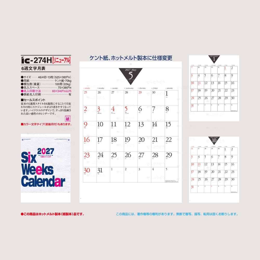IC-274H 6週文字月表(46/4切・13枚・525×380mm)