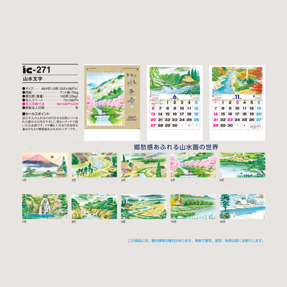 IC-271 山水文字(46/4切・13枚・525×380mm)