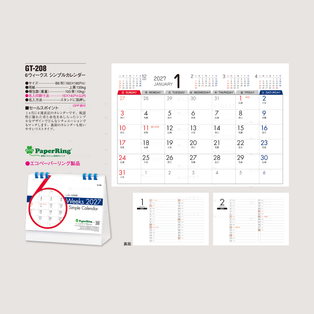 【GT-208】6ウィークス シンプルカレンダー