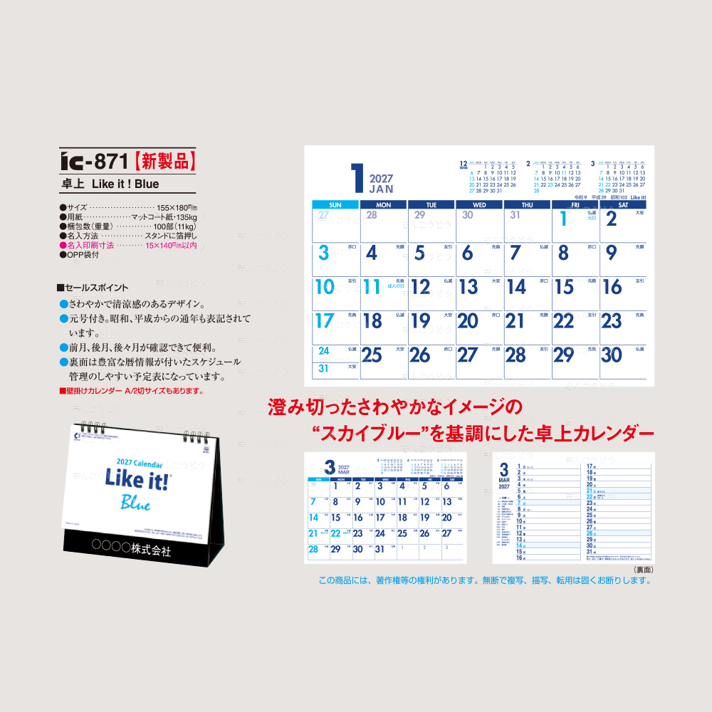 IC-600H 送れるカレンダー Like It! smart(ミシン目入)(A/4切・8枚・434×300㎜)
