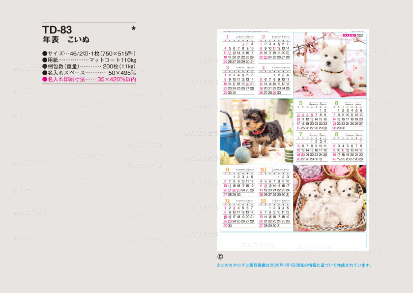 既製品カレンダーからお好きな商品・豊富な品揃えでお好みの品番のカレンダーに名入れをしてお届けいたします。