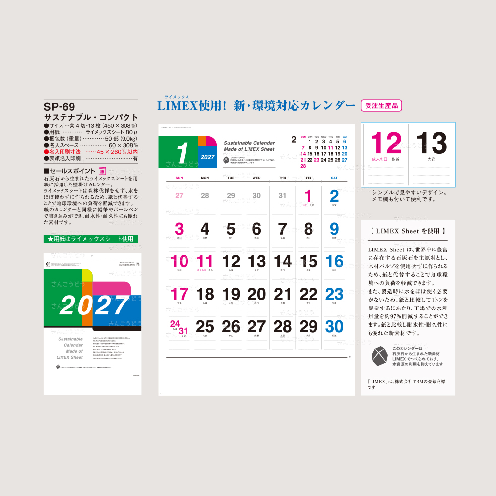 SP-535 ハイ・エコ・カレンダー (13枚・120×156m/m)