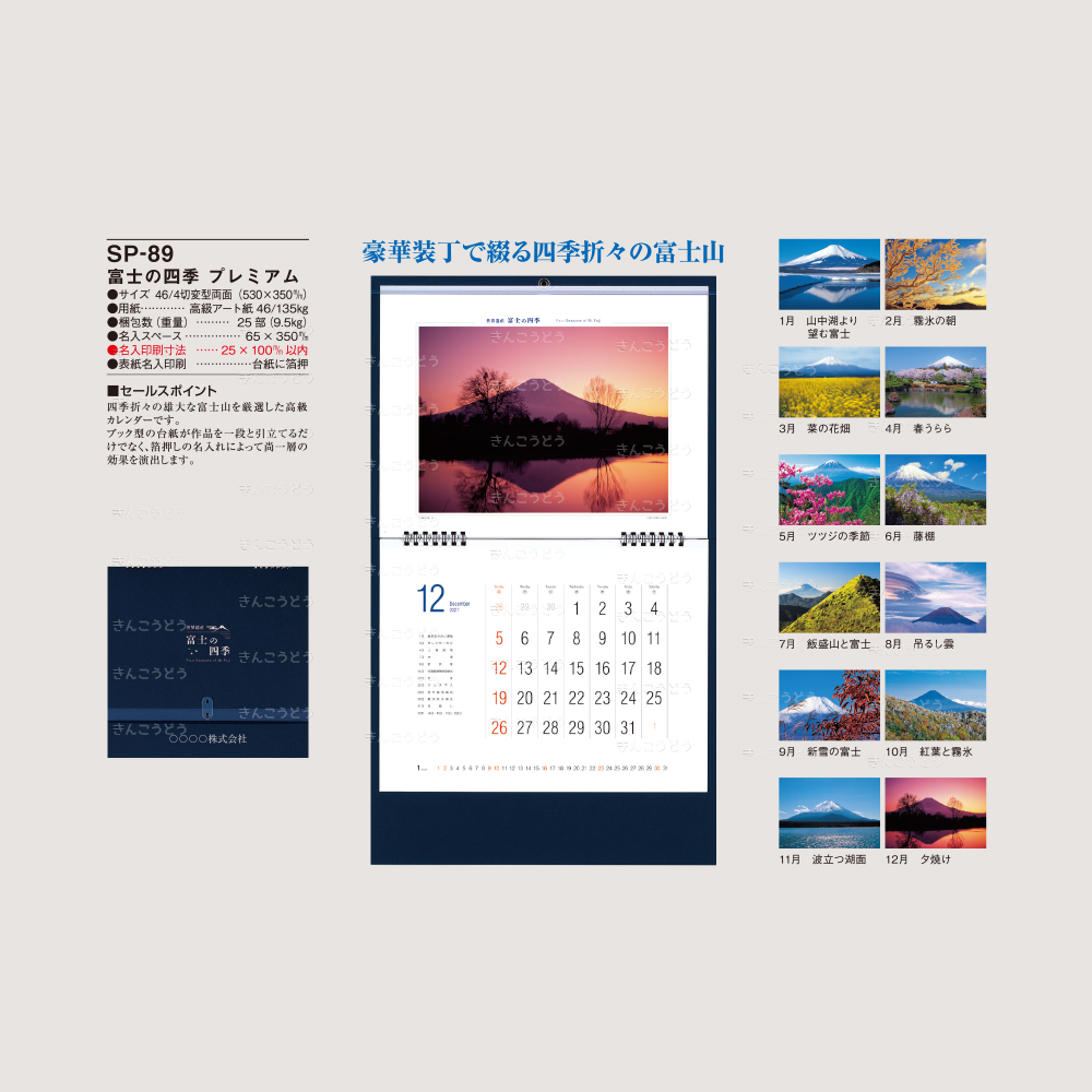 四季折々の雄大な富士山を厳選した高級カレンダーです。