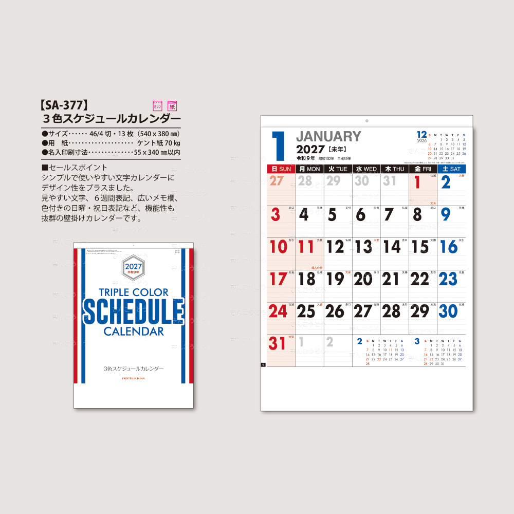 ※こちらの商品は『DK-162 3色スケジュールカレンダー』と同じです。