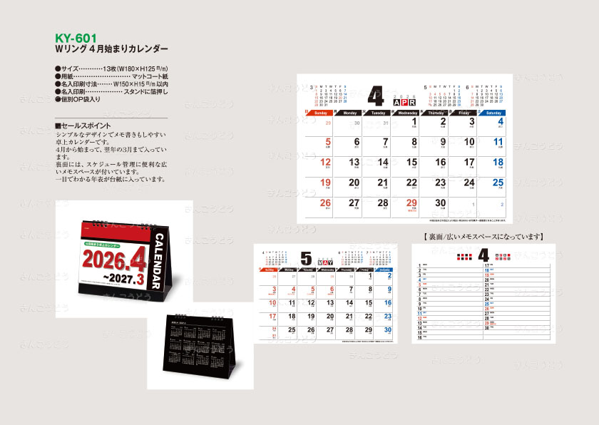既製品カレンダーからお好きな商品・豊富な品揃えでお好みの品番のカレンダーに名入れをしてお届けいたします。