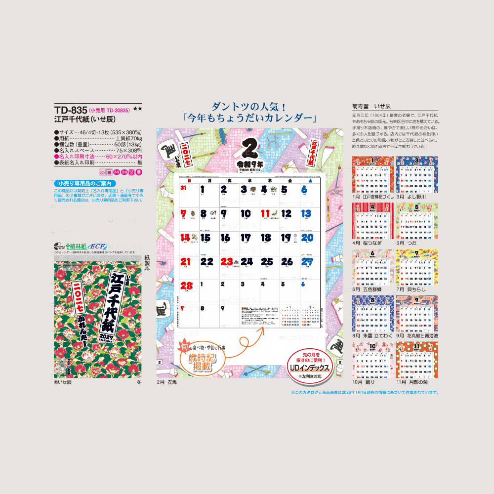 めくるたびにときめく、千代紙の世界。女性に根強い人気がありリピーター率の高いカレンダーです。