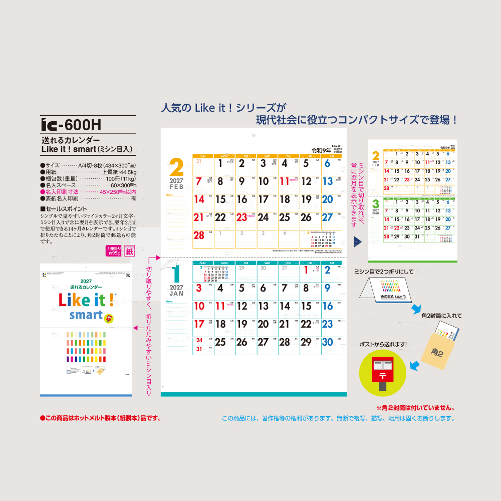 【IC-600H】送れるカレンダー Like it! smart(ミシン目入)