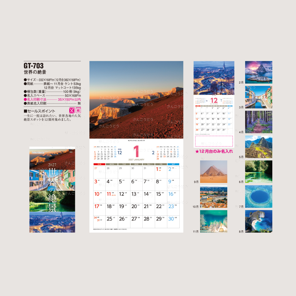 既製品カレンダーからお好きな商品・豊富な品揃えでお好みの品番のカレンダーに名入れをしてお届けいたします。