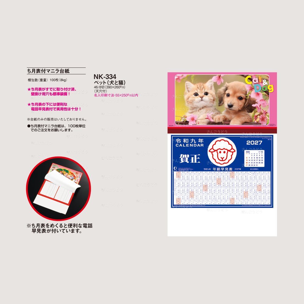 【NK-334】ち月表付マニラ台紙「ペット(犬と猫)」
