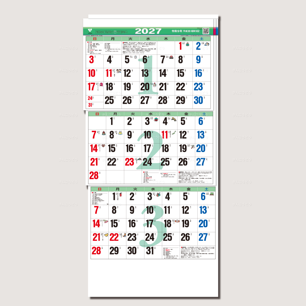 省スペースで使える行事アイコン付きの3ヶ月文字!