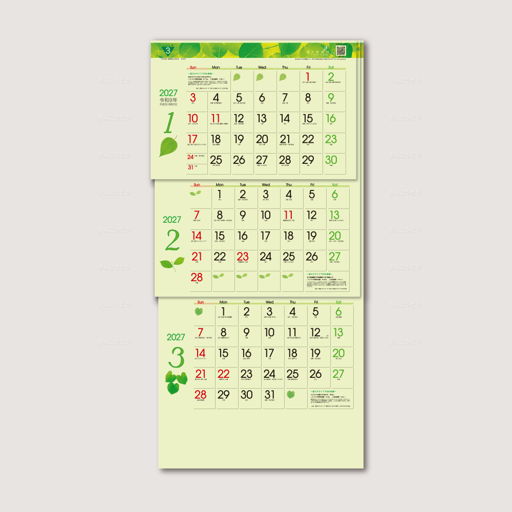 TD-787 グリーン3ヶ月eco(日付マーカー付)-上から順タイプ-(B/3切タテ・6枚・750×350mm)