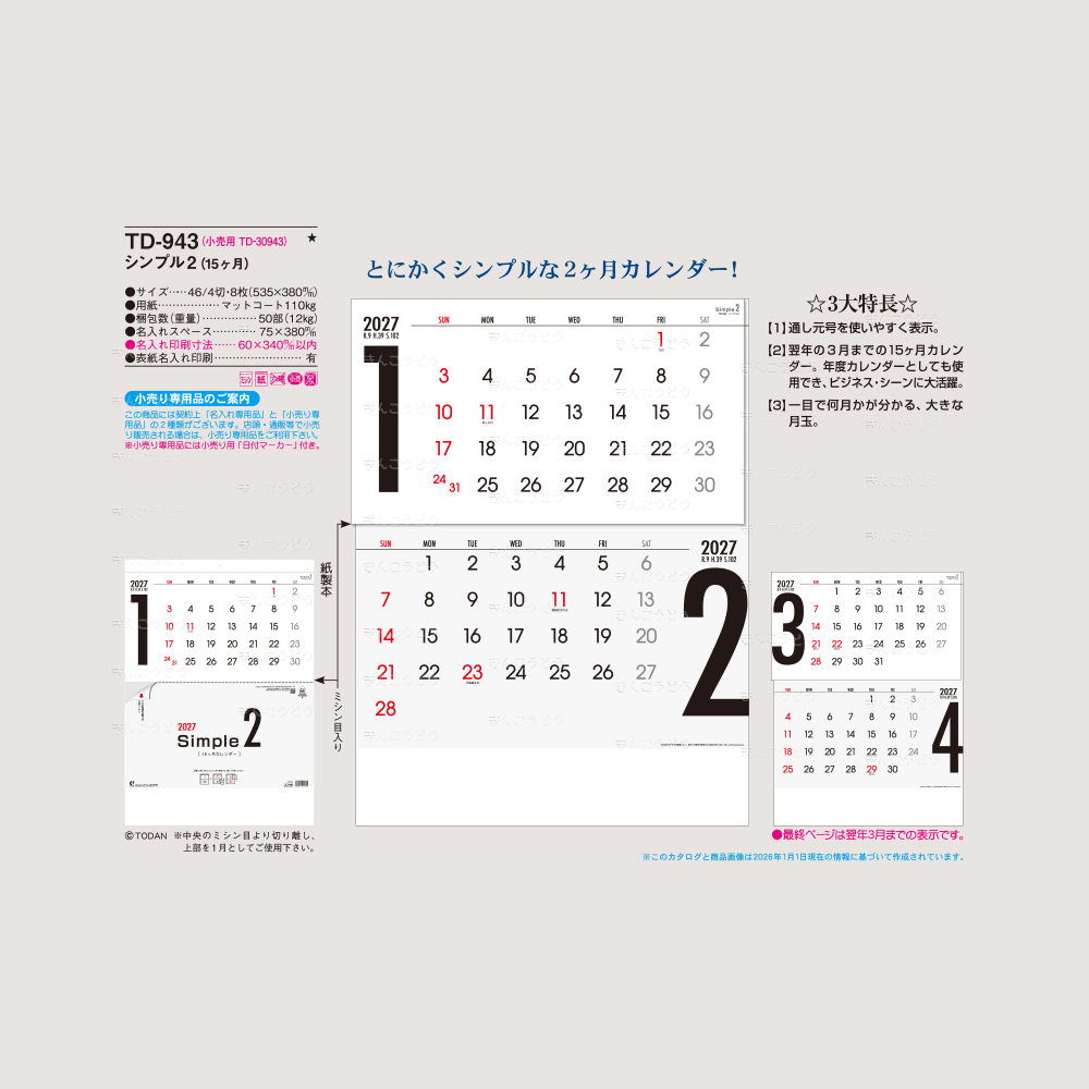TD-943 シンプル2(15ヶ月)(46/4切・8枚・535×380mm)