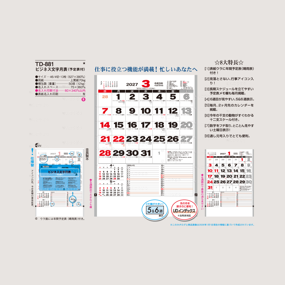 【TD-881】ビジネス文字月表(予定表付)