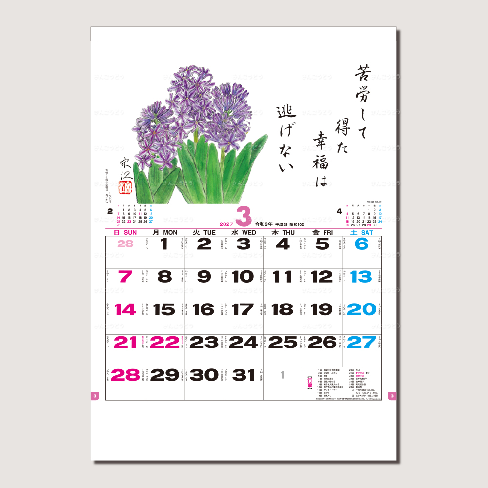 既製品カレンダーからお好きな商品・豊富な品揃えでお好みの品番のカレンダーに名入れをしてお届けいたします。