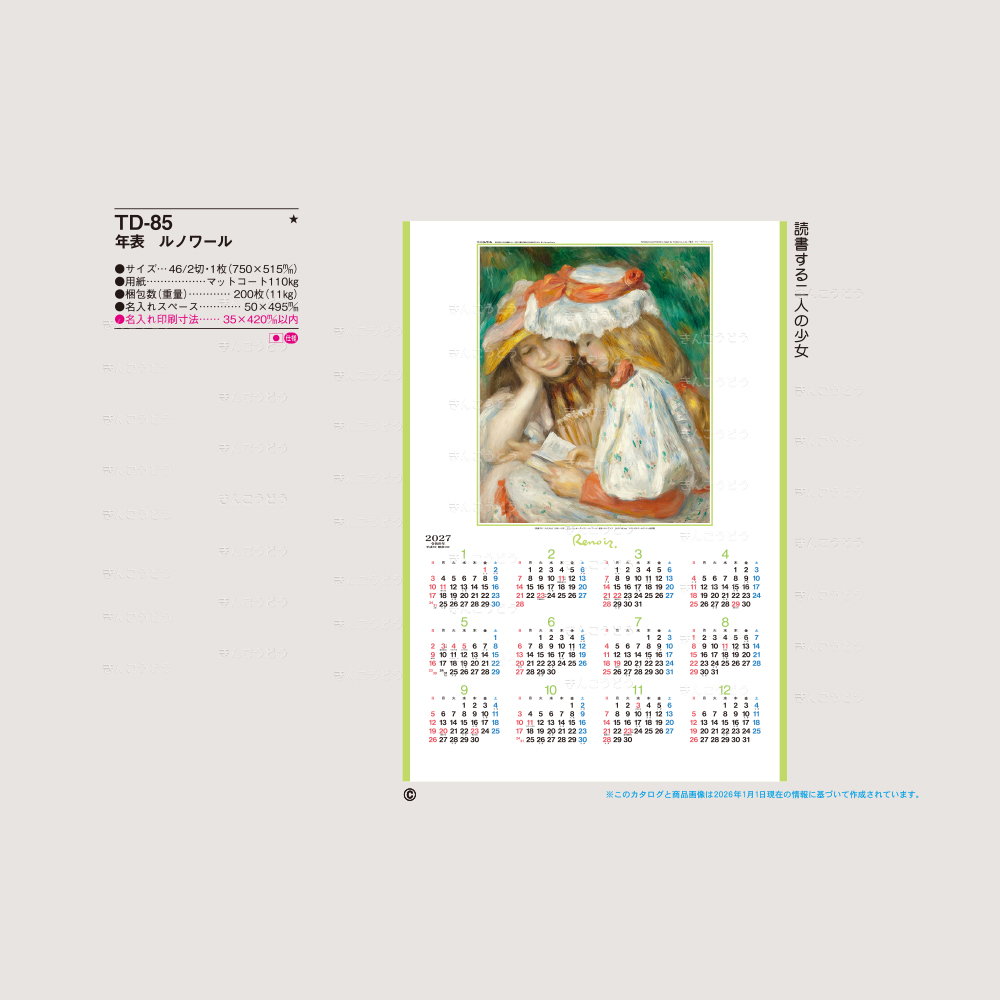 ルノアールの芸術の歩みを、1年を通して楽しめる「年表カレンダー」です。