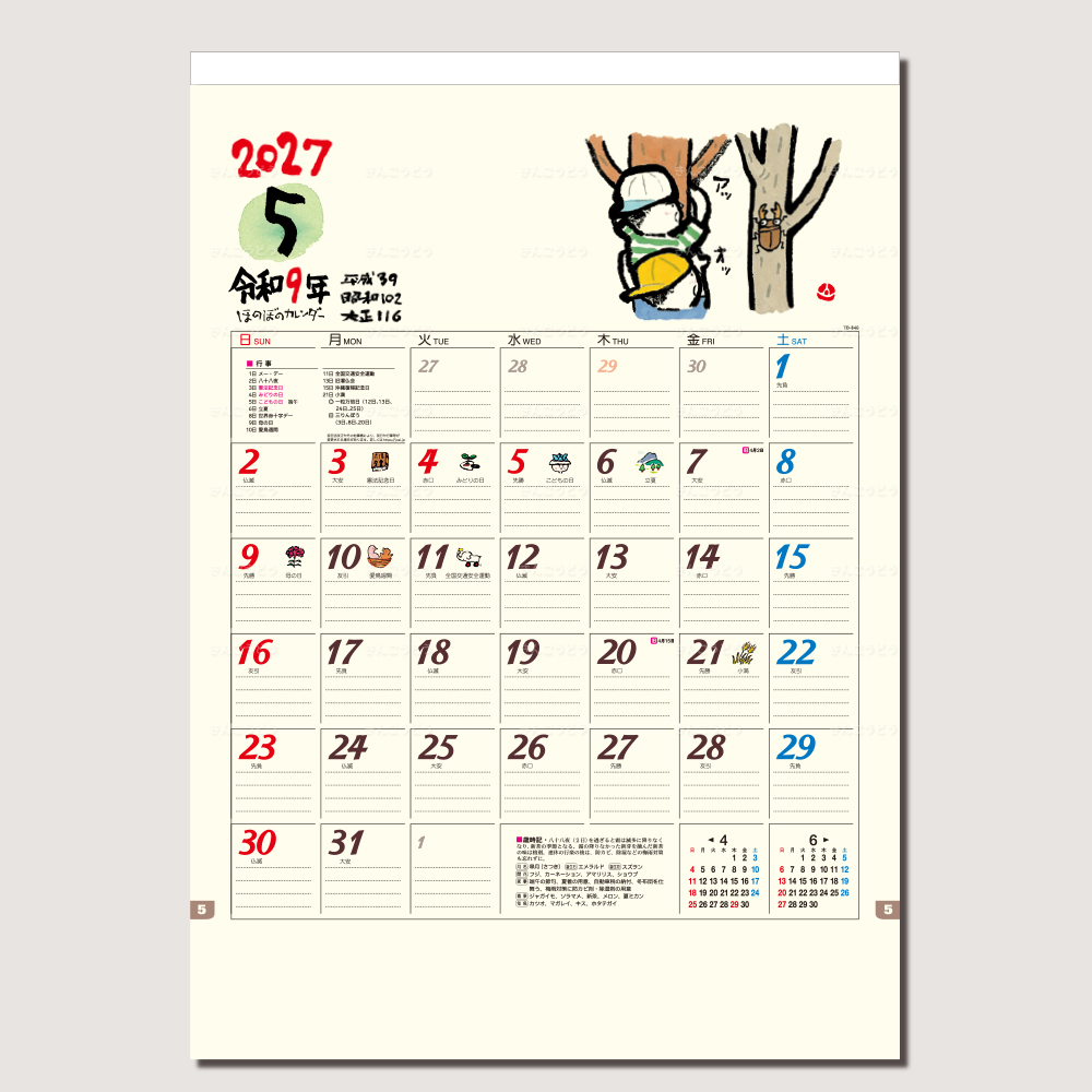 こころが、ほのぼのするイラストがかわいいカレンダーです。