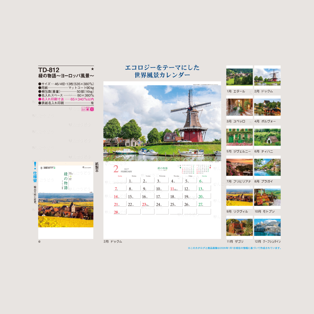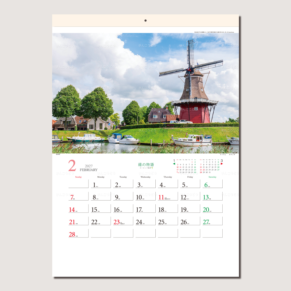 緑豊かなヨーロッパの街並みを集めた、ヨーロッパを散策しているような優しい気分になれるカレンダーです。